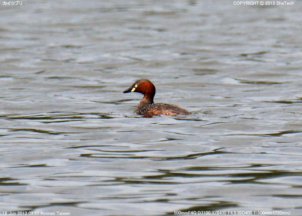 金門島南西部の古崗湖で探鳥。日本でもお馴染みのカイツブリが人口瑚を泳いでいた。